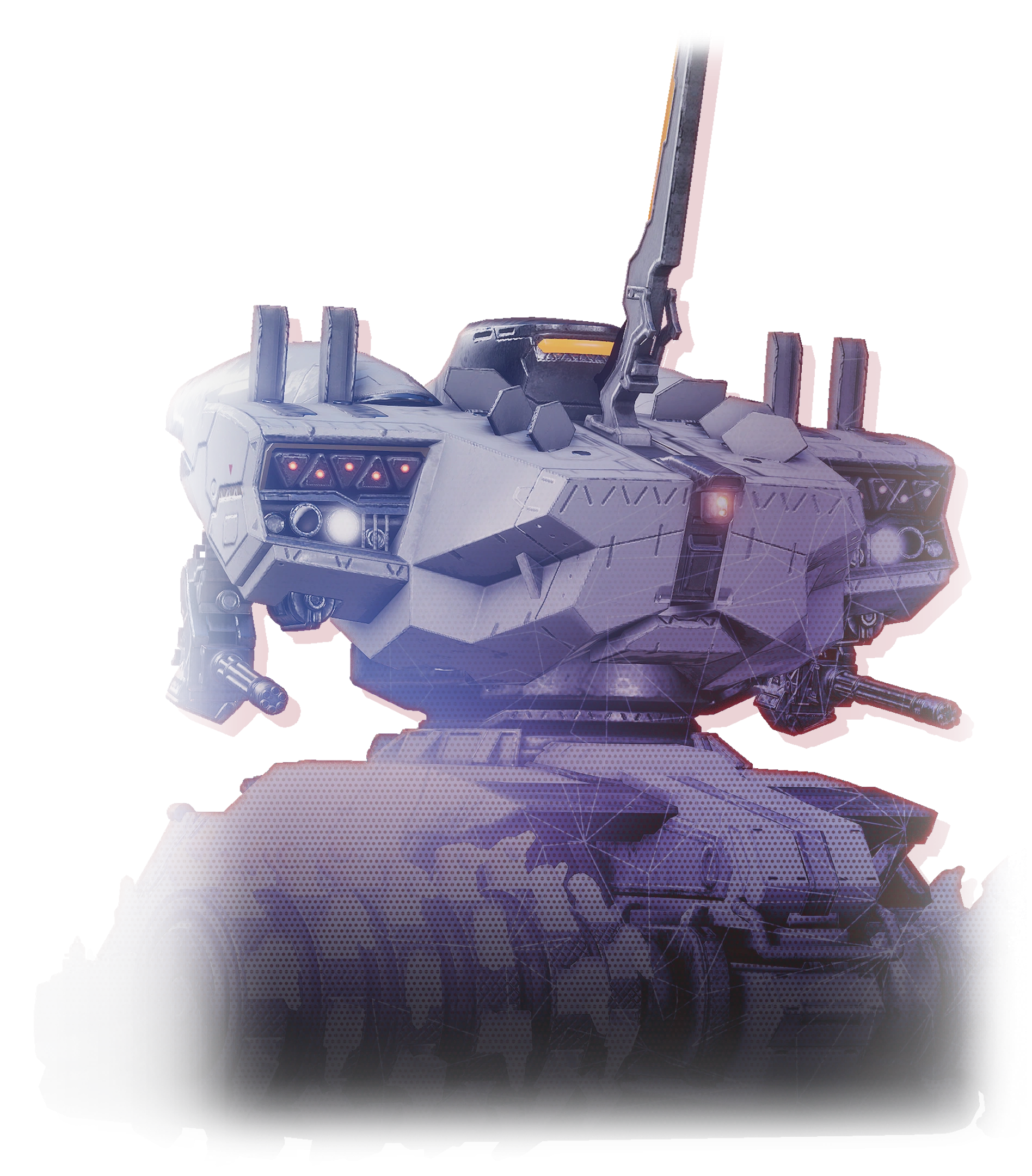 The front is equipped with rotating drills, allowing it to force its way through virtually any terrain. in addition to its large-caliber Gatling gun and tracking missiles, it also boasts a state-of-the-art plasma cannon that consumes a tremendous amount of energy. With all these weapons at its disposal, its destructive power could best be described as "excessive". Deployment of its rear mounted thrusters allows for increased acceleration, but the risk of overheating prevents prolonged operations of these emergency-use attachments.