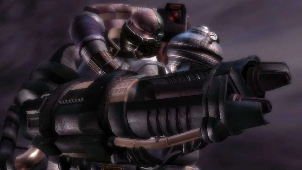 Plasma cannon: An extremely powerful gun that can shoot beams of plasma. While it may seem like a slow weapon it can easily rapid fire. It also doubles as a melee weapon as due to it's size it can easily crush someone.