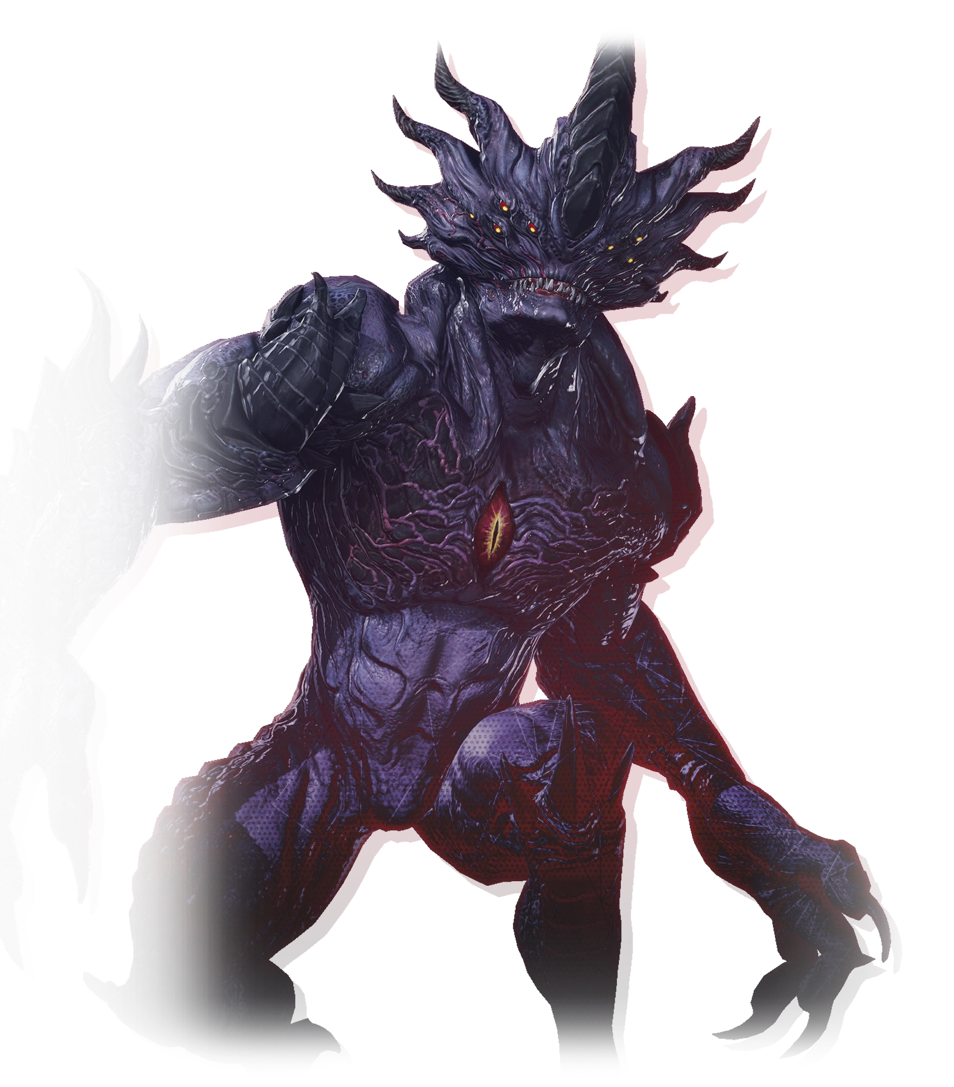 Devoid of intelligence or reason, it acts violently as dictated by instinct. It is born with an innate anger toward all things and has been known to decimate entire regions with its bare claws. Its rampage will only cease when the giant eye on its chest loses power, leading to its death.