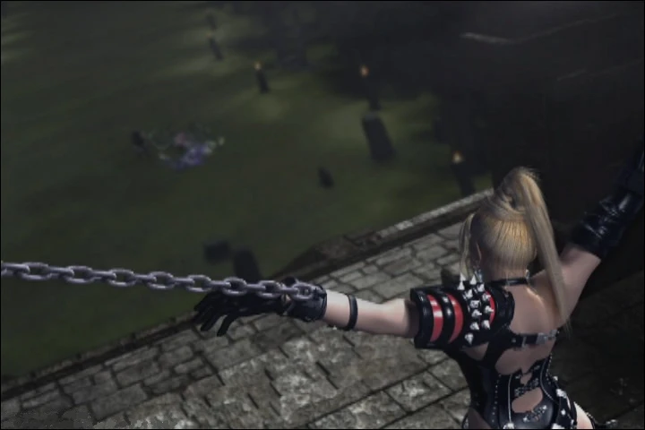After the captain dismisses them, Ryu is told about Canna's tragic past. Suddenly Canna comes out and shows Ryu a message on her cell phone; "Be my daddy?". This comes as a surprise for Ryu, as he has never thought of being a father. After Cliff picks him, Canna and Mizuki up, Ryu travels via helicopter back to Hayabusa Village. Before he arrives at his home, Ryu jumps from the helicopter and lands in the Black Spider graveyard. He walks into the misty grave site, the souls of the Black Spider Ninja howling as he passes them by. Eventually he comes to where he placed the Blade of the Archfiend, the demonic ninja blade that was once used by the deceased Dark Ninja Lord, Genshin. As he takes the sword, the Dragon Ninja respectfully addresses Genshin as he says "I will borrow your soul, Lord of the Dark Ninja." and with that, he travels back to Hayabusa Village. While fighting across hordes of vengeful Spider Ninja, the Grip of Murder begins to take its toll on Ryu, causing him to stagger to the village gate before losing consciousness.
